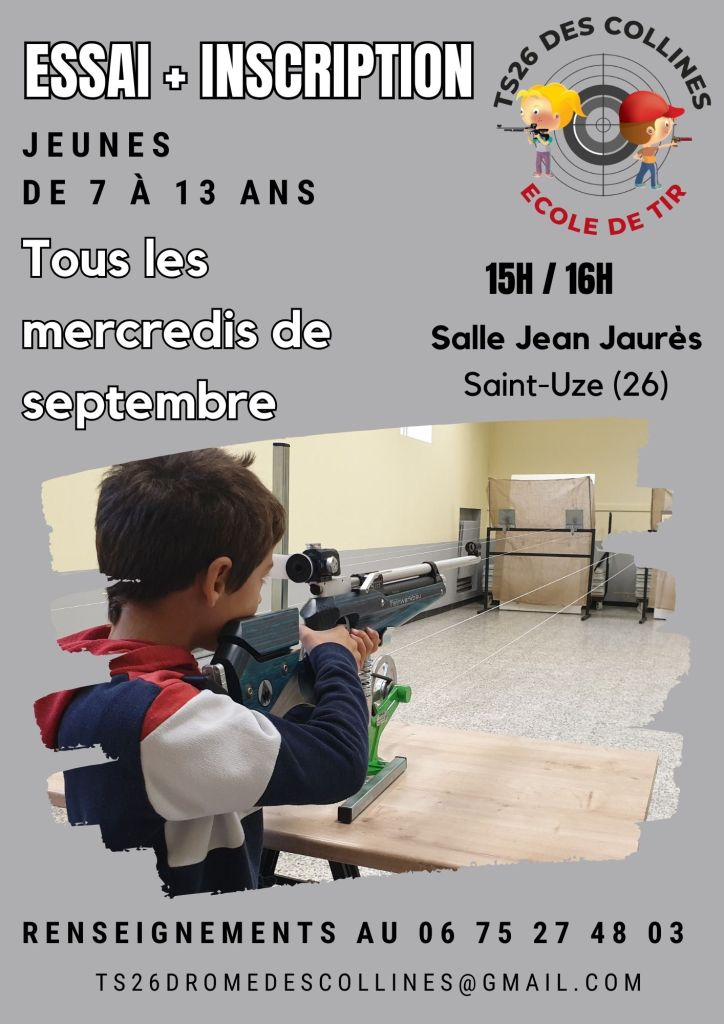Les entraînements en école de tir sportif et section ISSF 10m se déroulent tous les mercredis à :